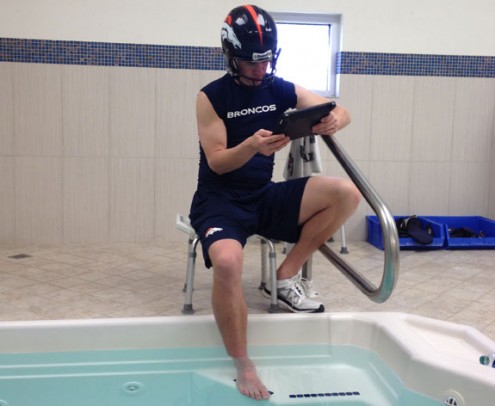 Peyton Manning does it all. Here he is icing his ankle, watching game film on an iPad, and listening to the plays being called on the practice field behind him. He’s probably also filming a Papa John’s commercial at the same time, writing the next rap battle with his brother, attending a parent teacher conference, solving world hunger, and throwing over 50 td passes a year. He is an inspiration to almost-clergy everywhere, especially those who are still trying to figure out how to be “on” while their toddler is in the room because I haven’t figured that out yet. That’s something, sadly, seminary doesn’t teach you.